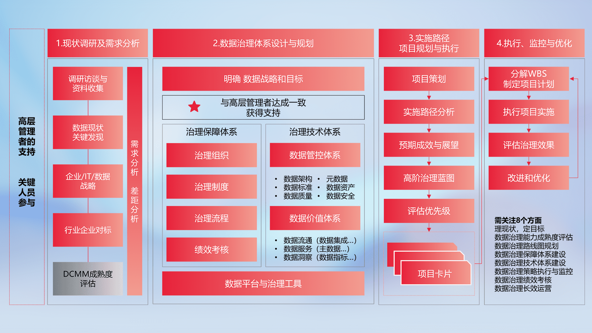制定并执行统一的数据标准,,,,规范数据定义和格式,,,消除冗余和不一致性,,实现跨部门和跨系统的数据一致性,,,,为企业提供标准化的数据基础。。。。